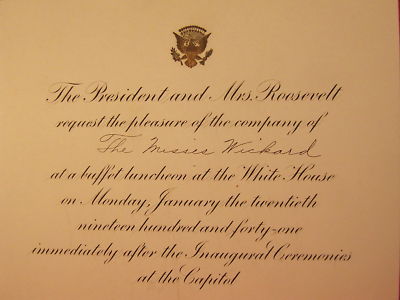 Whitehouse Inaugral Invitation FDR Roosevelt Jan 1941