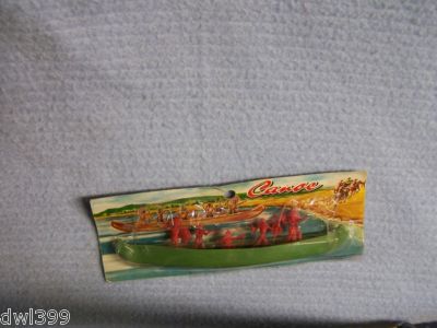 PLASTIC DIME STORE CANOE WITH 5 INDIANS - 1950'S - NOS