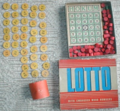 1915 LOTTO box. 1890s HOCUM game. (8) boards, 42 no.