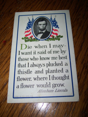 Title (ebay affiliate link): Abraham Lincoln Postcard - 103 Year-Old Lincoln Quote!