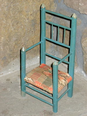 Title (ebay affiliate link): 19TH C MINIATURE DOLL'S CARVER ARMCHAIR OLD BLUE PAINT
