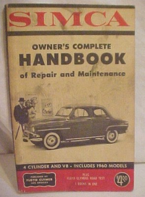 Title (ebay affiliate link): Simca Owner's Manual Handbook V8 4 Cyl 1960 Repair