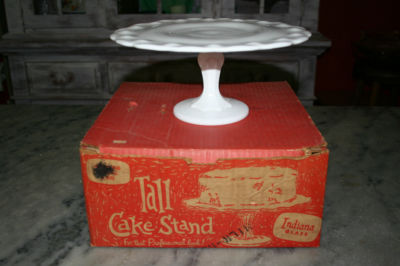 INDIANA GLASS MILK GLASS CAKE STAND WITH OLD BOX