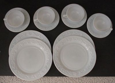 12 P SET 1940'S MILK GLASS ORIGINAL OLD STOCK ANCHOR