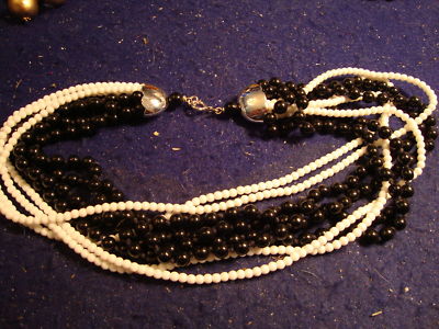 GRANDMAS ESTATE MULTI STRAND MILK GLASS JET NECKLACE