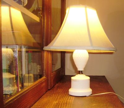 12" HOBNAIL MILK GLASS LAMP FENTON 3 FEET EXCELLENT CON