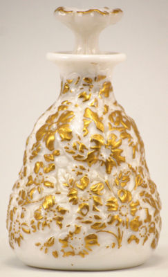 Fostoria Perfume/Cologne Milk Glass w/Gold Highlights
