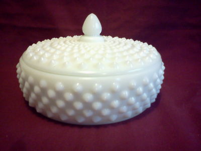 Vintage Fenton Hobnail Milk Glass Dish with Lid