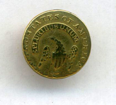 small 1-piece brass button: eagle, "E Pluribus Unum"