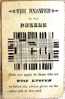 Antique Ad Trade Card PUZZLE WRITING April Fool!