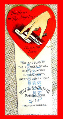 c1900 Diecut HEART HAND BOOKMARK Player Piano Angelus