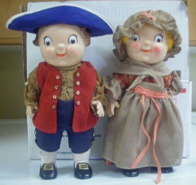 Two Campbell Soup Kids Dolls in Colonial Outfits