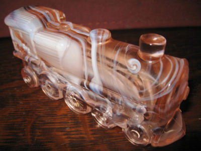 Title (ebay affiliate link): DEPRESSION PINK SLAG GLASS TRAIN ENGINE CANDY CONTAINER