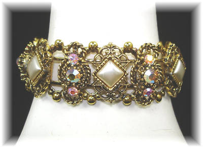 Title (ebay affiliate link): VINTAGE PINK AB RHINESTONE ANTIQUE GOLDTONE BRACELET