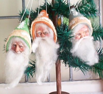 Title (ebay affiliate link): 3 VINTAGE STYLE SANTA HEAD CHRISTMAS ORNAMENTS BY VONI