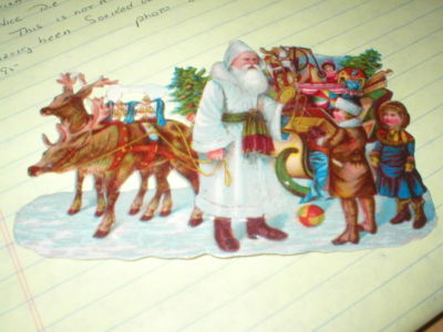 Title (ebay affiliate link): VICTORIAN DIE CUT WHITE SUIT SANTA & SLEIGH SCRAP