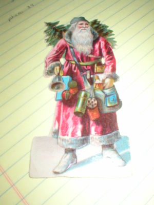 Title (ebay affiliate link): VICTORIAN DIE CUT SCRAP SANTA #1 CRANBERRY COLORED SUIT