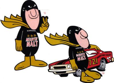 TWO Large BUDWEISER "Mighty Malt" Man STICKERS