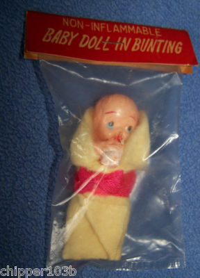 DIME STORE CELLULOID BABY IN BUNTING -1950'S -JAPAN-NOS