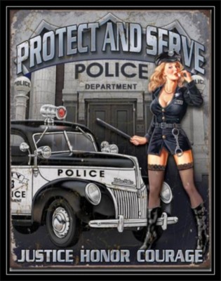 Vintage Style Tin Sign Police Department Pin Up Girl