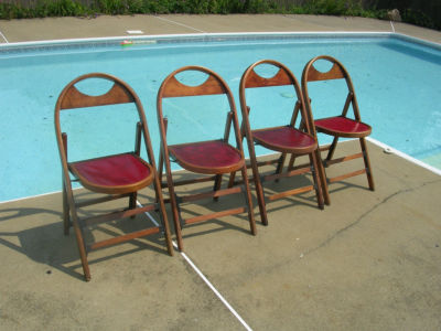 Title (ebay affiliate link): 4 Antique folding chiars wood leather Adirondack deco