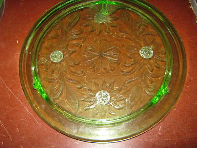 Title (ebay affiliate link): 10" Green Depression Glass Footed CAKE PLATE Floral