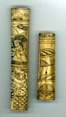 Two Antique Scrimshaw Bone Knife Sheaths Sheath