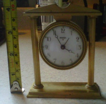 Title (ebay affiliate link): Rare Antique Swiza Brass Mantle Clock with Pillars RUNS