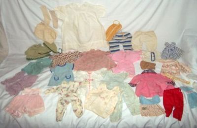 34pc Vintage Antique mixed Doll Clothes Lot old