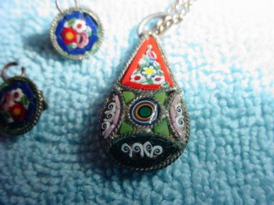 Title (ebay affiliate link): antique millefiori micro mosaic pendant & 2 earring pcs