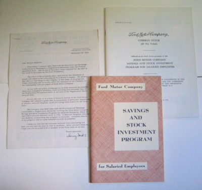 Title (ebay affiliate link): 1956 Ford Motor Co Stock Prospectus + Letter + Booklet