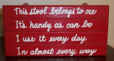 Title (ebay affiliate link): Vintage Child's Step Stool Red with White Lettering