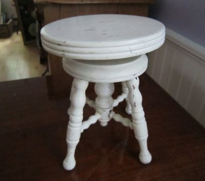 Title (ebay affiliate link): Vintage Salesman Sample Piano Stool Wood White Paint 9"