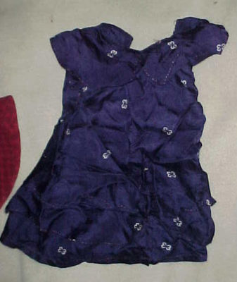Flapper type Doll Dress, Flowers Blue Silk Antique