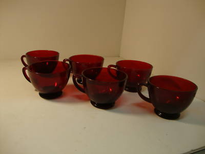 Title (ebay affiliate link): SET OF 6 VINTAGE DEPRESSION GLASS CUPS RUBY RED NR