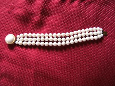 Vintage Milk glass Bracelet white/ goldtone SIGNED