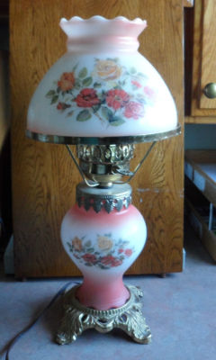 VTG HECO 3004 BRASS & MILK GLASS HURRICANE LAMP FLORAL