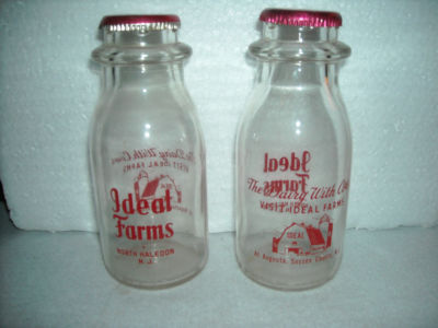 VINTAGE GLASS MILK BOTTLE OF IDEAL FARMS. LOT OF 2