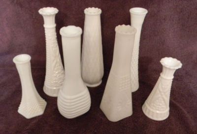 LOT 7 VTG Milk Glass Bud Vases Various Sizes & Designs