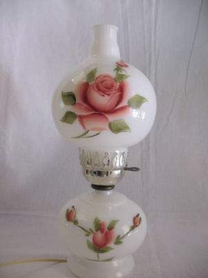 VINTAGE VICTORIAN HURRICANE LAMP MILK GLASS PINK ROSE