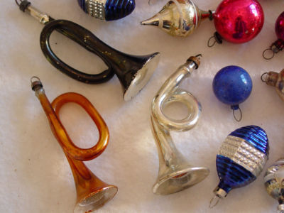 3 VINTAGE GLASS HORN ORNAMENTS AND MORE