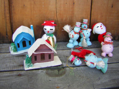 Title (ebay affiliate link): VINTAGE CHRISTMAS DECORATIONS-SNOWMEN-HOUSES etc.-JAPAN