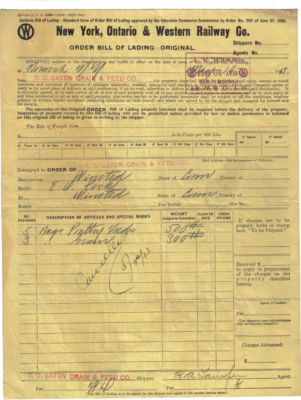 1913 NEW YORK, ONTARIO & WESTERN RWY CO Bill of Lading