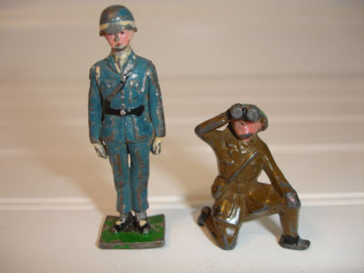 2 Old Toy Soldiers Standing Guard and Kneeling WW1 LQQK