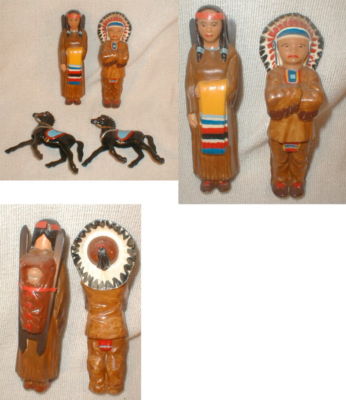 4pc 1960s PLASTIC TOY HORSES & INDIAN CHIEF & SQUAW !!