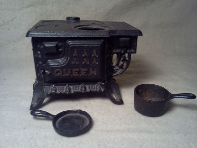 QUEEN SALESMAN SAMPLE / MINIATURE TOY CAST IRON STOVE