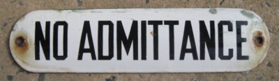 Old Vintage Porcelain NO ADMITTANCE Sign kitchen hotel