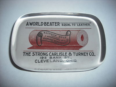 GLASS ADVERTISING PAPERWEIGHT STRONG CARLISLE&TURNEY CO