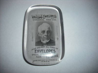 GLASS ADVERTISING PAPERWEIGHT WHITCOMB ENVELOPE CO