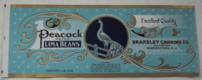 Old Peacock Brand Lima Beans can label..Bordentown,N.J.